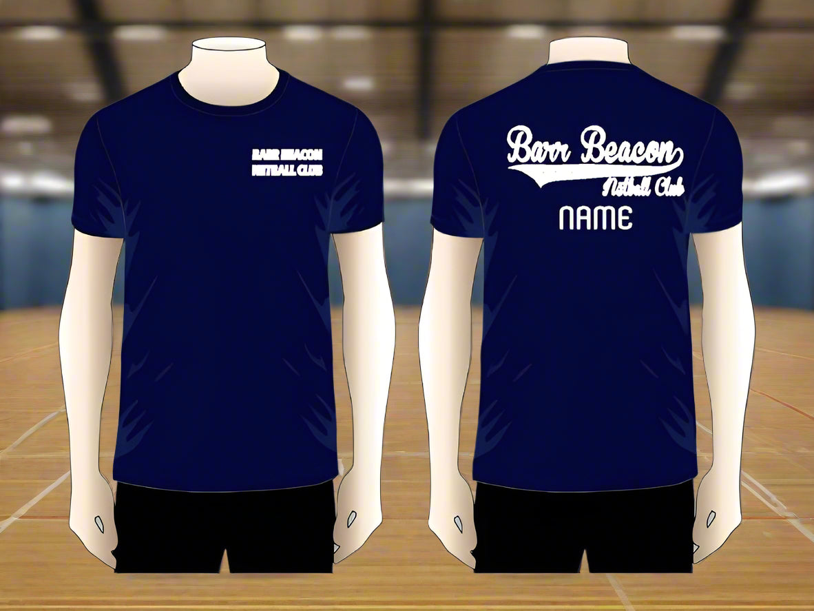 A lightweight navy blue t-shirt with the Barr Beacon text on the left chest.