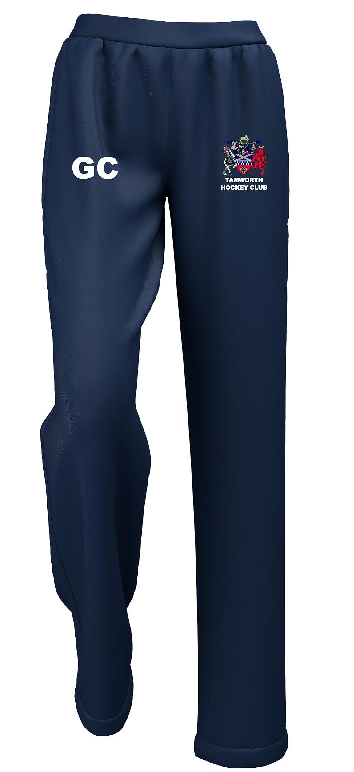 A fully lined trouser with 3/4 length leg zips. It is navy with Tamworth Hockey Club logo printed on the leg